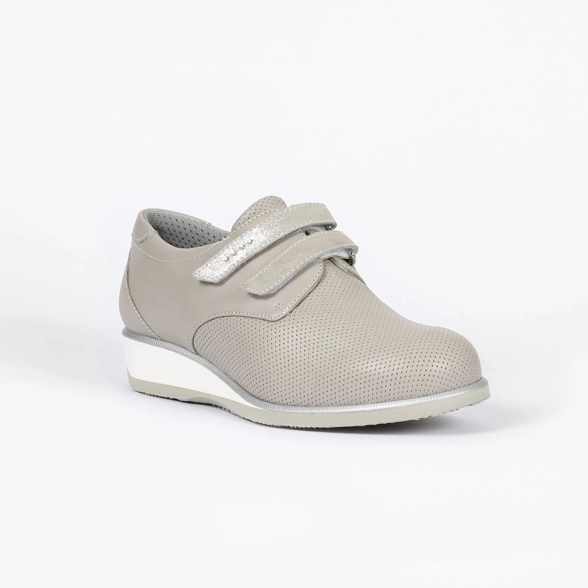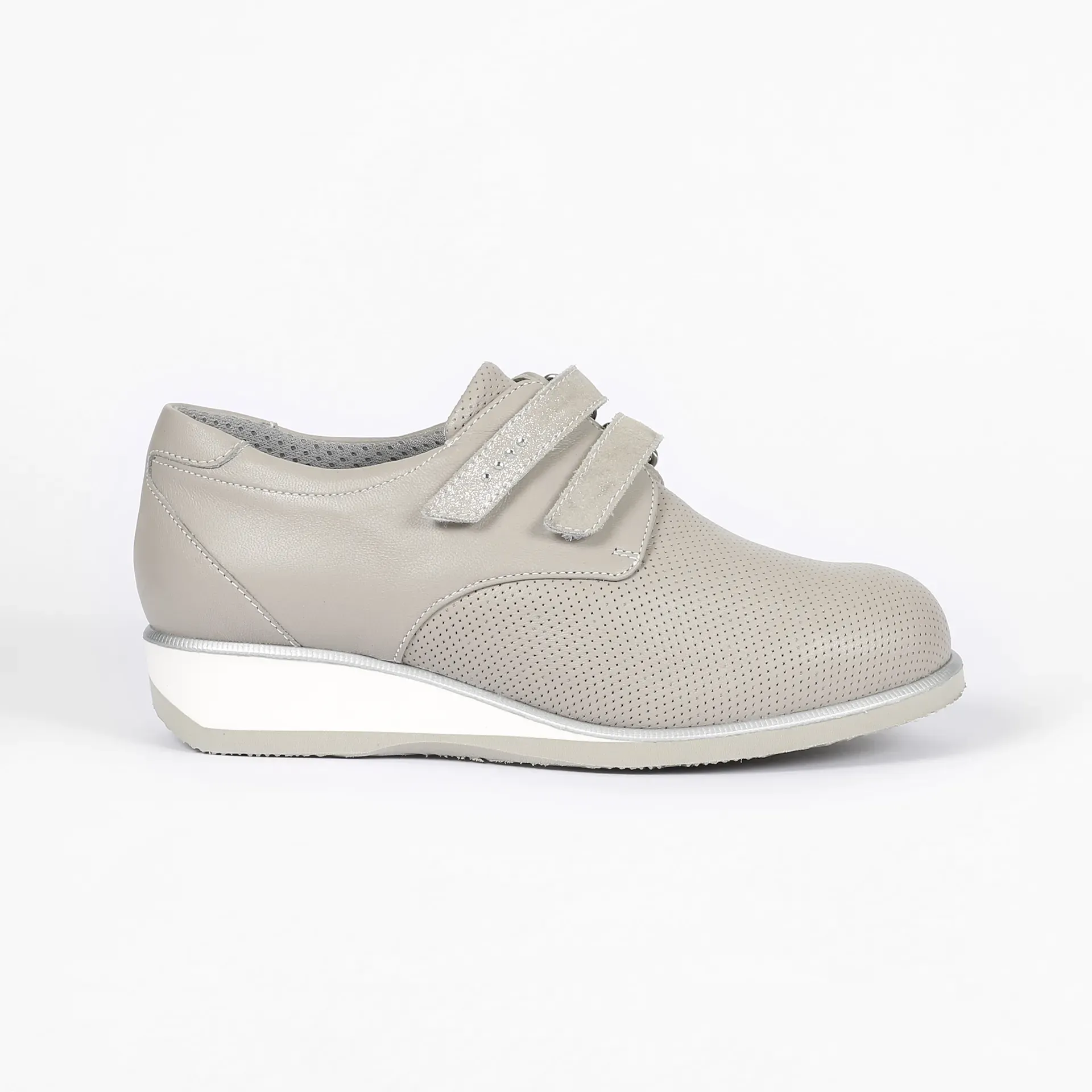 Calzatura terapeutica estiva con tomaia elasticizzata, traforata e traspirante, predisposta per plantare personalizzato, dotata di plantare anatomico estraibile. Leggera extraflessibile, priva cuciture interne per evitare qualsiasi frizione del piede. Suola correggibile in EVA per la applicazione di speronature e piani inclinati ove necessari a compenso e miglioramento della postura e della fase dinamica del passo. Ideale contenimento del tallone per garantire la stabilità e il controllo del retropiede in fase di appoggio.
